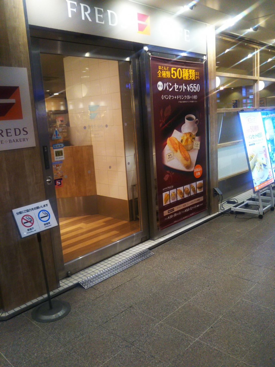 大阪の中心都市、阪急梅田駅の構内にあるショップです。焼きたてのパンがいただけるベーカリーです。コーヒーや紅茶などのドリンクセットがお得でした。明太フランスはモチモチのパン生地に明太の辛味がおいしかったです。
