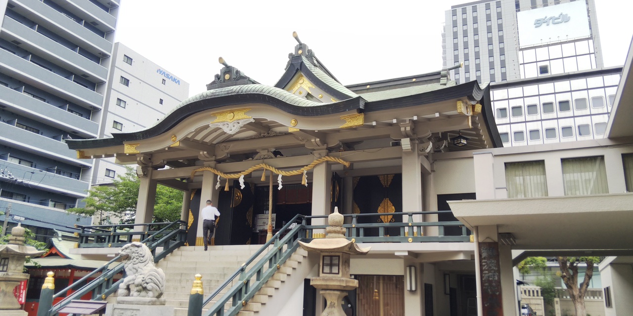 難波神社は大阪のメインストリート・御堂筋沿いにあります。反正天皇が仁徳天皇を偲んで創建した神社で、もともとは河内松原あたりにありました。その後、豊臣秀吉公が現在の場所に移しました。最寄りの駅は大阪メトロ御堂筋線の心斎橋駅です。