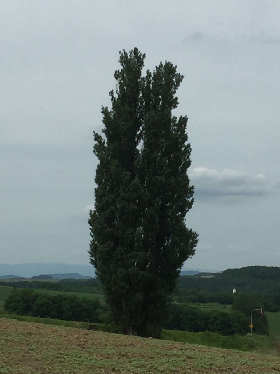 美瑛で、ぜるぶの丘付近から行くことができます。20年ほど前にも行ったことがありますが、変わらないで立っている感じに安心した気がしました。国道から近くて行きやすいためか、見に来て写真を撮っている人がたくさんいました。