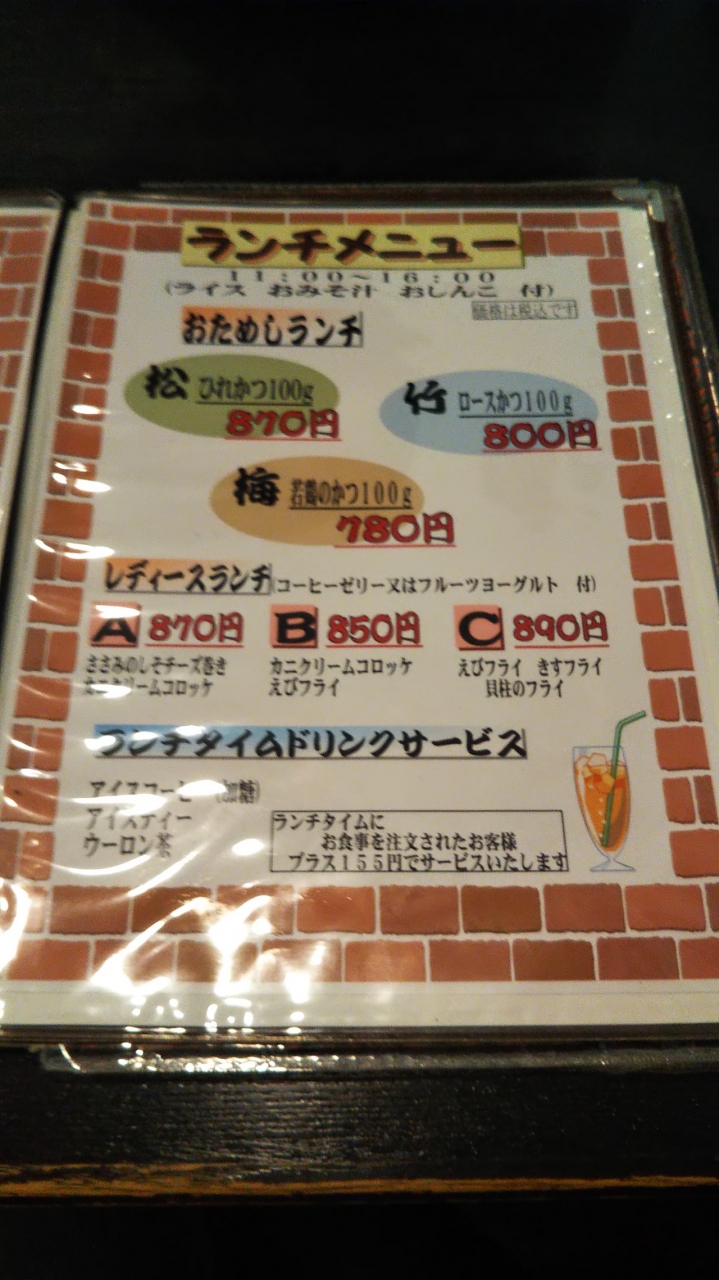 大船にある松竹ショッピングセンター2階にありました。ランチで利用しました。ランチメニューの種類が豊富で、またどれもリーズナブル。定番っぽいロースかつランチとおためしランチの竹を注文。どちらもロースかつが100gと書かれていましたが、ボリュームがすごい!!!。たぶん100g以上あったんじゃないかなぁ~(笑)。カツも柔らかく最高でした!。ロースかつランチは、カツの他に、エビフライ、野菜フライ(かぼちゃ)が付いて890円。ちなみにおためしランチの竹は800円。とてもリーズナブルです♪。ソースは甘めでとても美味しかったです。ごはんは2杯まで、キャベツ、しじみ汁は1度お替りできます。こちらのお店はまたぜひ伺いたいです!!!。