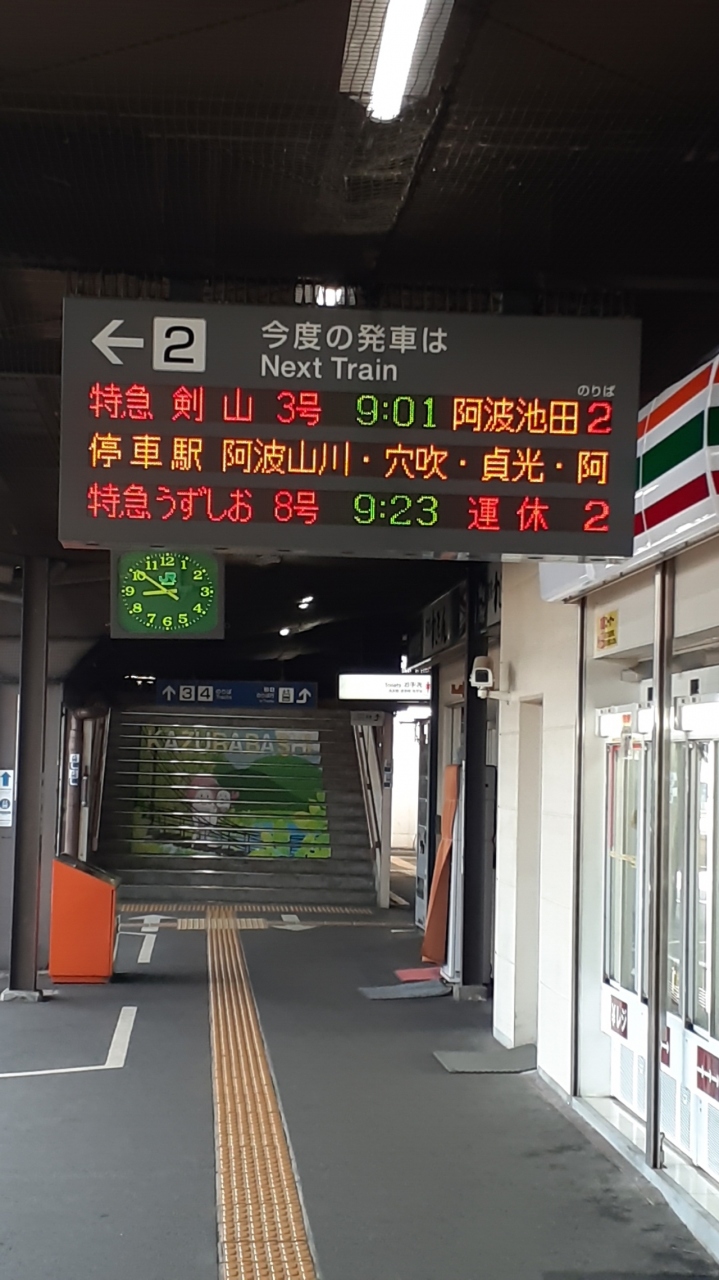 しかし2020年6月15日に徳島駅の掲示を見たところ、徳島9時23分発特急うずしお高松行き等一部の列車は引き続き運休する旨案内がありましたので注意が必要です。