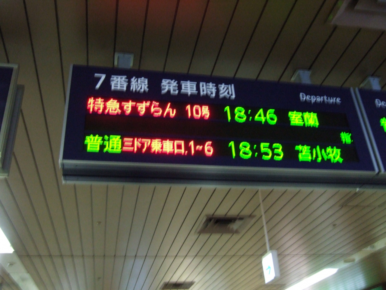 札幌から千歳、苫小牧を通り、室蘭まで走っている特急。函館行きの北斗はディーゼルカーですが、すずらんは電車なので静かです。通常は1日に6往復走っていますが、C型コロナの影響で、現在は日中の2往復が運休していました。でも、もともと空いており、北斗より快適に乗れて安いきっぷもあるので重宝します。