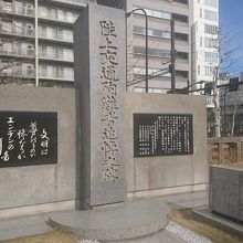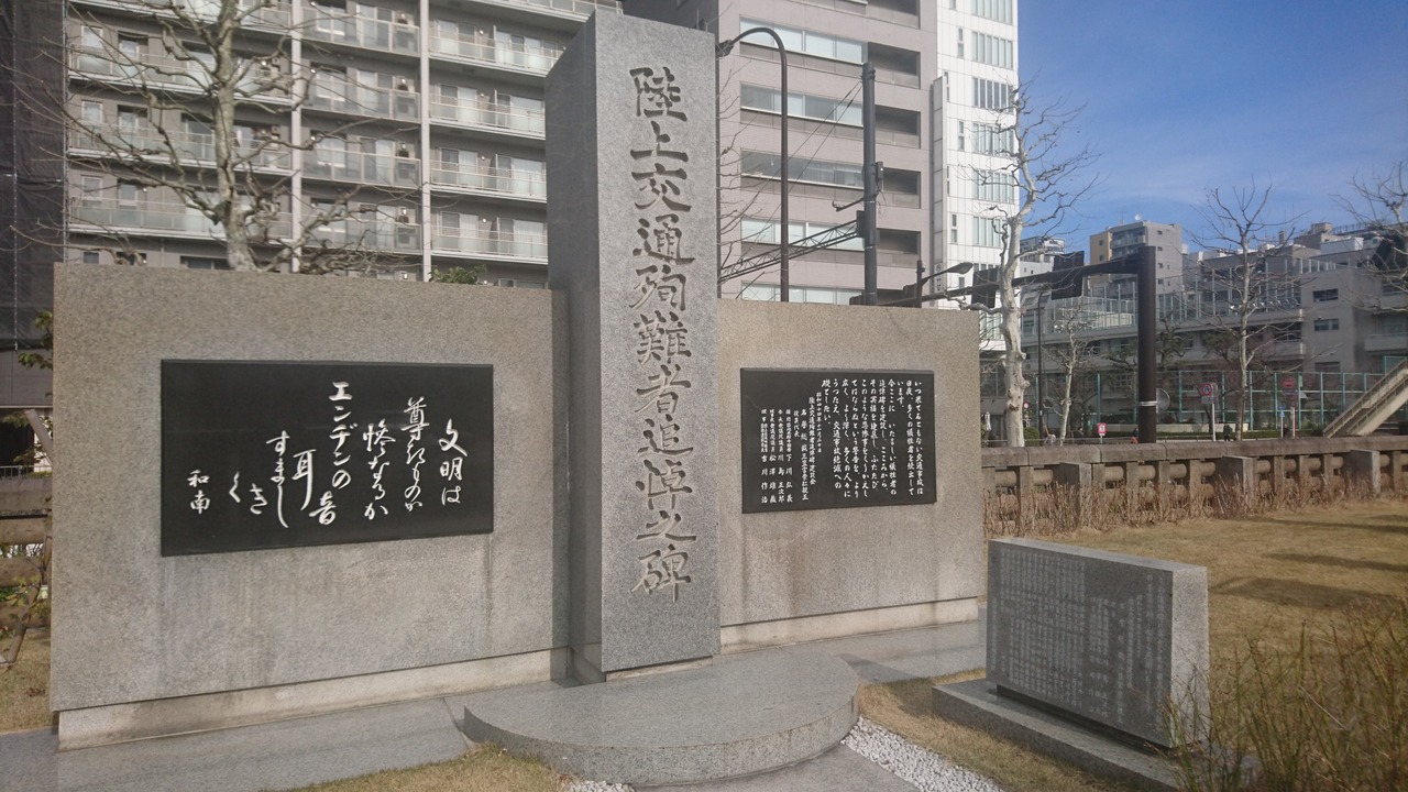 築地本願寺の石碑にはとても立派なものが多いですが、交通事故で亡くなった方のこの追悼慰霊碑は、左右に添え石が置かれた背の高い石柱で、かなり立派な石碑でした。三笠宮崇仁親王が代表となって建立されたものだそうですが、改めて交通事故の悲惨さを思いました。