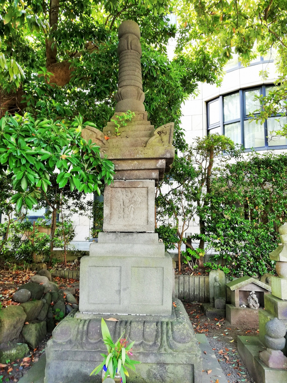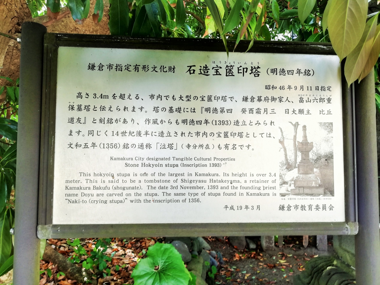 由比ヶ浜から鶴岡八幡宮へ続く道を散策中左側に、案内板と石造宝篋印塔 がひっそりと立っていました。