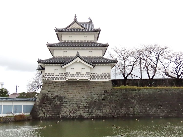 三階櫓を見ておきたいと思い訪問。でも城址の一角だけ保存されている印象で敷地の大半は自衛隊の駐屯地として使用されています。重要文化財に指定されているのは旧二ノ丸隅櫓のほうで櫓内部は見学禁止のようです。最後に記念写真を撮っておきたいと思いアングルを模索しましたが「新発田城」のプレートが樹木の陰になっていて三階櫓込のフレーミングが困難。どのパーツをメインに据えるのか城址の構成がわかりやすい案内板が欲しいと思いました。蛇足ですが観光案内所にあった新発田市パンフが旧年度版。ていうか、パンフに年度を入れる感覚が理解できませんでした。駅からの城までのアクセスもわかりにくく、新発田は観光には力を入れていないのかも。