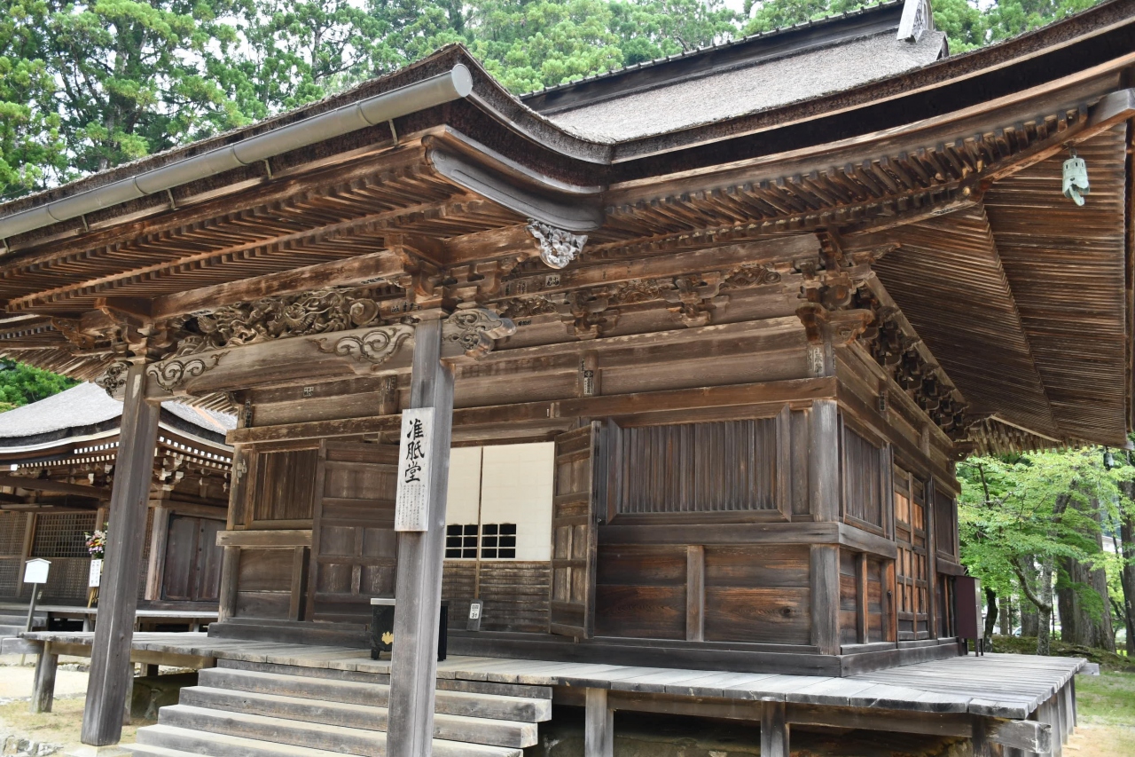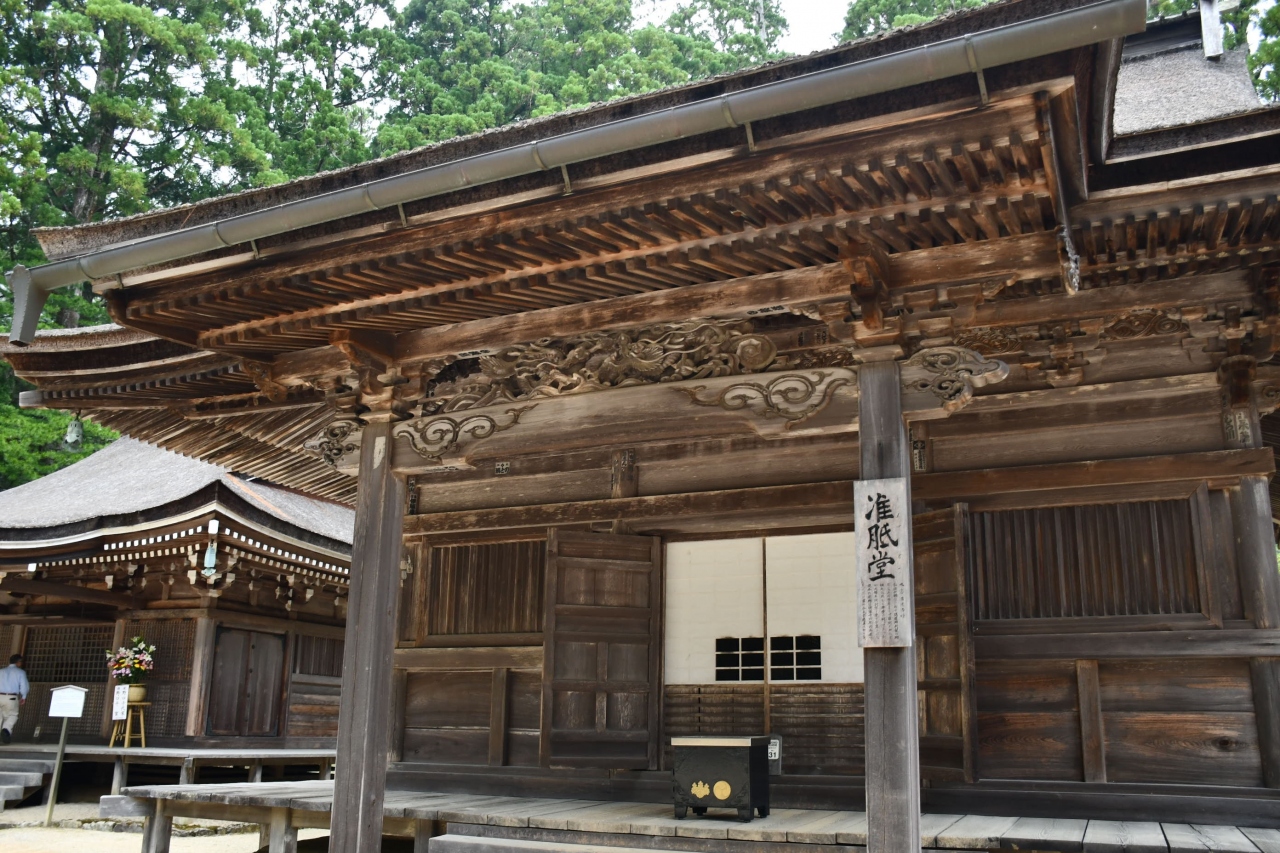 高野山壇上伽藍の、金堂から少し西という位置にあります。弘法大師の御影を安置してあるので、御影堂という名前が付いております。壇上伽藍は、朱塗りの根本大塔や中門、白木造りの金堂や御影堂という対比も見ものです。御影堂は、宗派によって「ごえいどう」とも「みえいどう」とも読まれます。