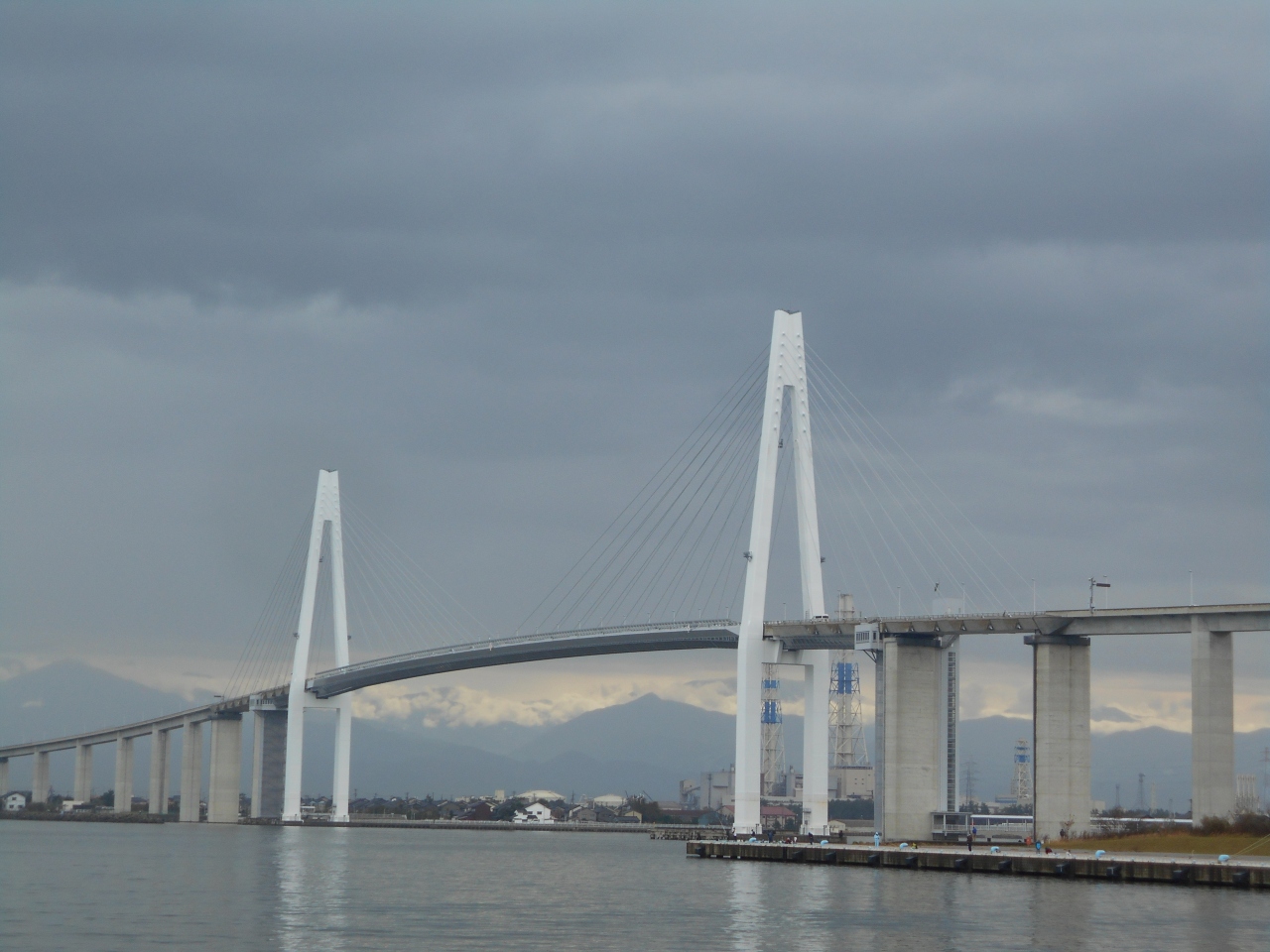 富山新港に架かる全長3.6キロの橋で上層が車道、下層が全天候型歩行者専用道路(あいの風プロムナード)となっています。潮海王丸パークから眺めると斜張橋の凛とした美しい姿と青空のもとに広がる雄大な立山連峰との見事なコントラストとなっています。次回はあいの風プロムナードの踏破にチャレンジです。