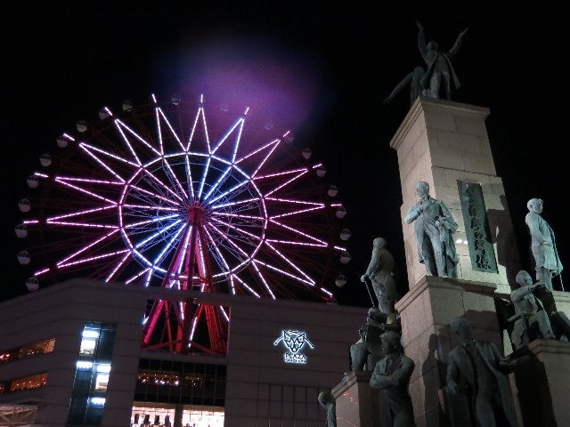 人物たちを表しています。フォトスポットとして人気で、肥後にあるアミュプラザ鹿児島の観覧車とのツーショットが
