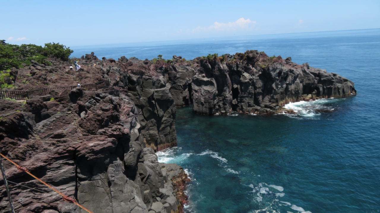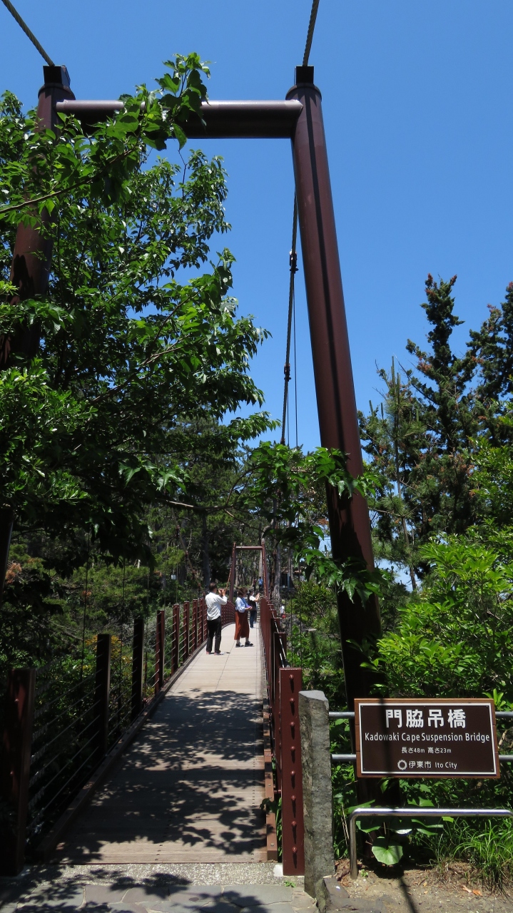 城ヶ崎海岸の無料の駐車場から徒歩5分程。アクセスが楽なので誰でも気軽に行くことができます。橋は吊り橋なので少々揺れますが、思ったほどではありませんでした。ただし、断崖に掛かっている高さ23mもある橋なので、真下を除けばそこは海。高所恐怖症の人は足がすくんでしまうかも。スリル満点な橋でした。