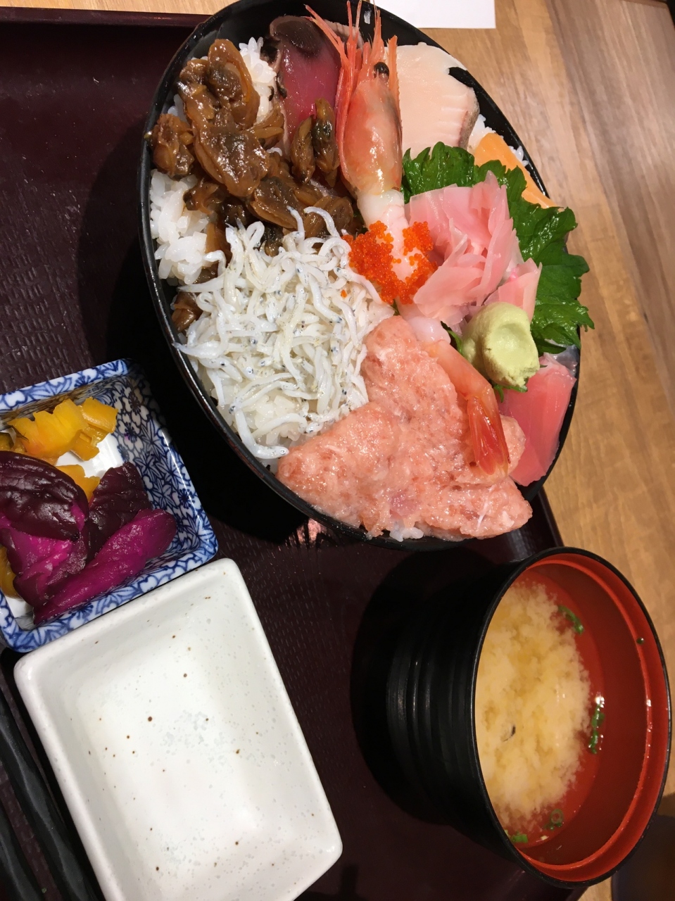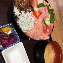 注文した海鮮丼はボリュームはありましたが、あさりの佃煮やしらすが多くて、お刺身が少し寂しく感じて残念でした。