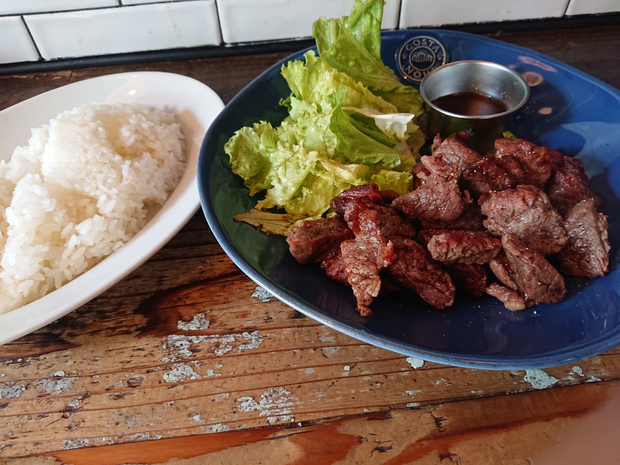 横浜駅西口、モアーズの裏手の橋を渡ったところにあるイタリアン。先日、ランチボックスをテイクアウトしたが、今回伺うと店頭にカットステーキ300g 880円ライス付きと書かれたメニューが。