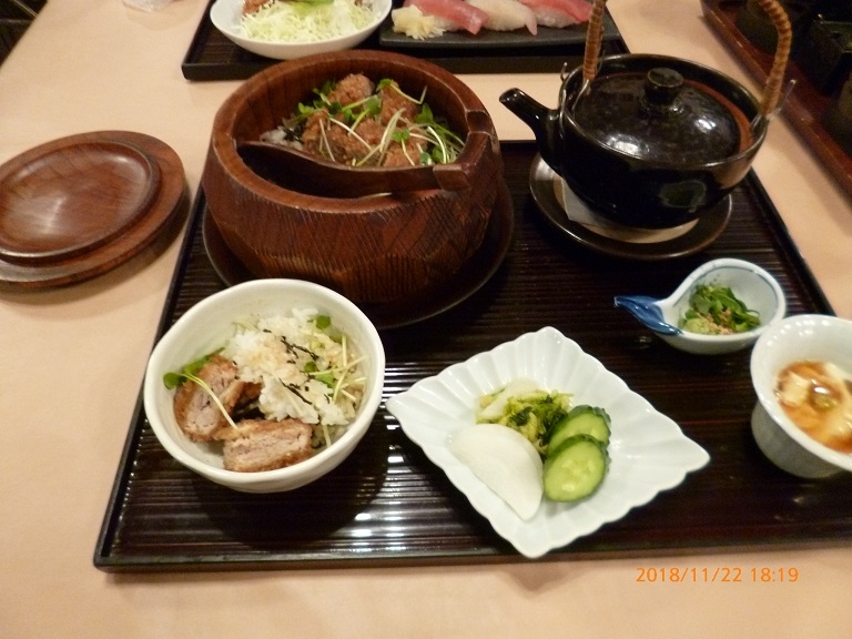 東京観光に行く直前に、テレビで銭湯だった建物を改装したトンカツ屋さんということで放映されていました。面白そうなので、表参道に行った時に夕食を食べる予定にしていました。脱衣所を改装した天井の高いホール席に案内されてラッキー。とんかつはセットメニューあり、お店で揚げたてのとんかつは本当に美味しいかった。寿司やうどんのセットもありお得だった。味、接客、値段ともに大満足。