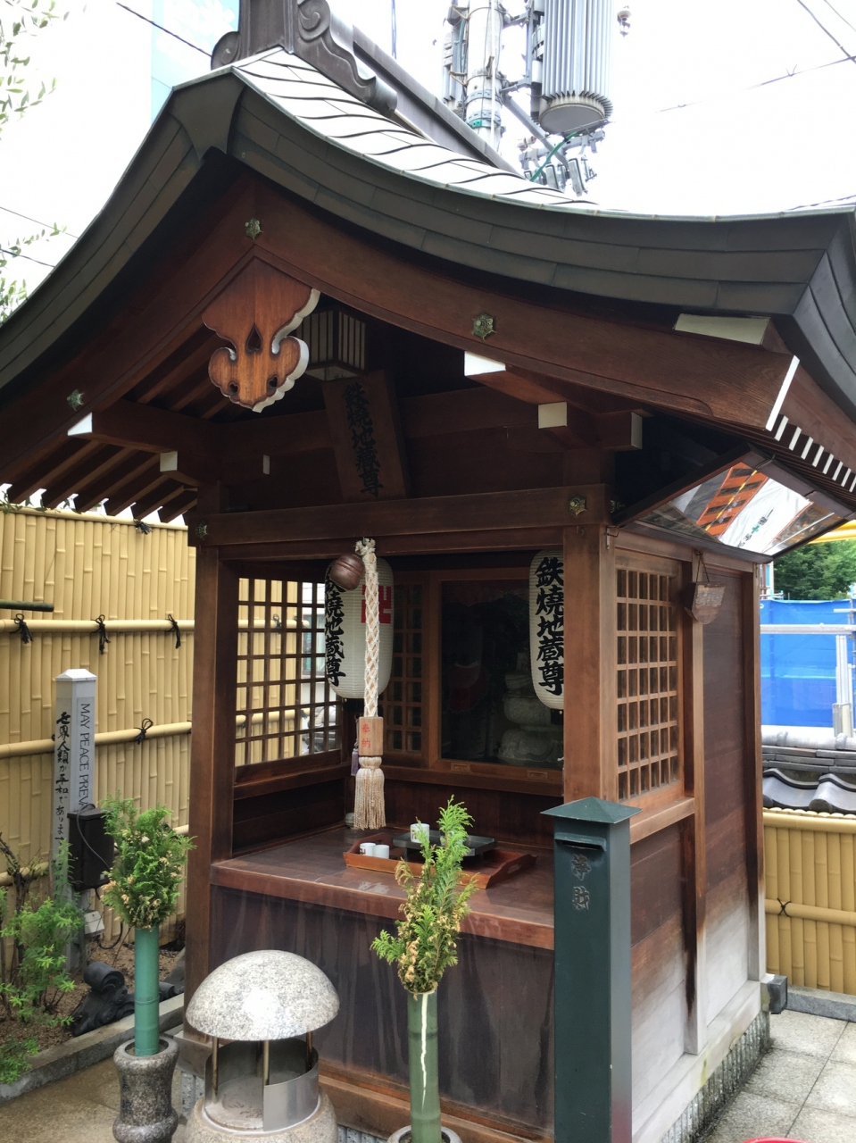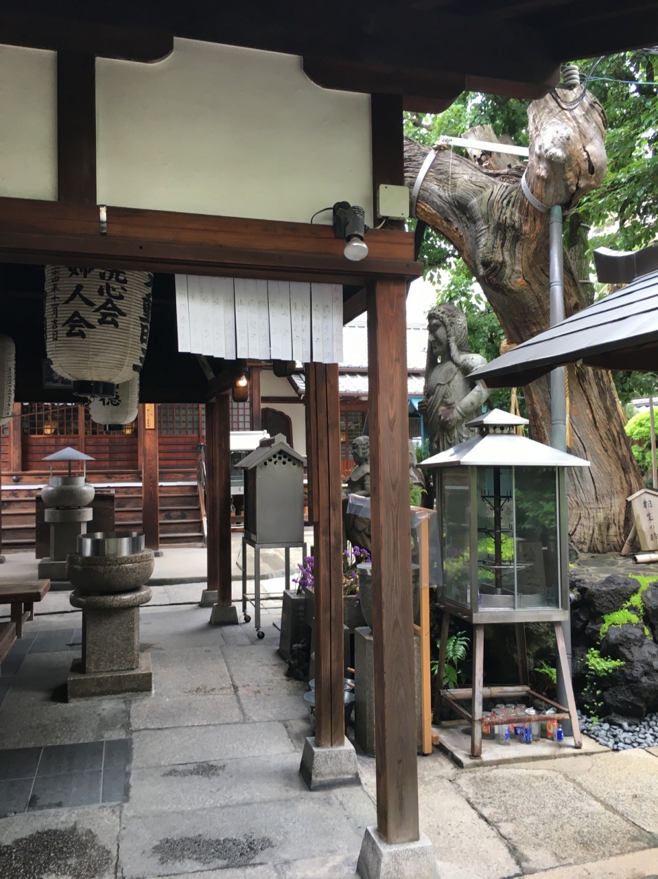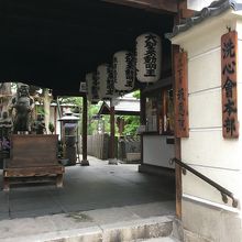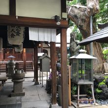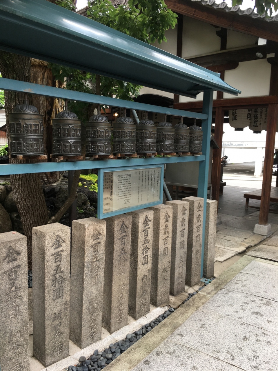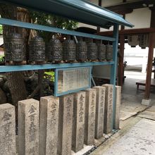 坂道沿いにあり中に入ると右側に小さな社務所があり上にはいくつかの小さな提灯がぶら下がっていました。コンパクトに纏まった境内で経車と言う鐘のようなものが8つ並んでいました。そのほかは、お堂や石仏があり、大木もありました。