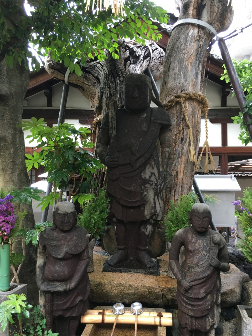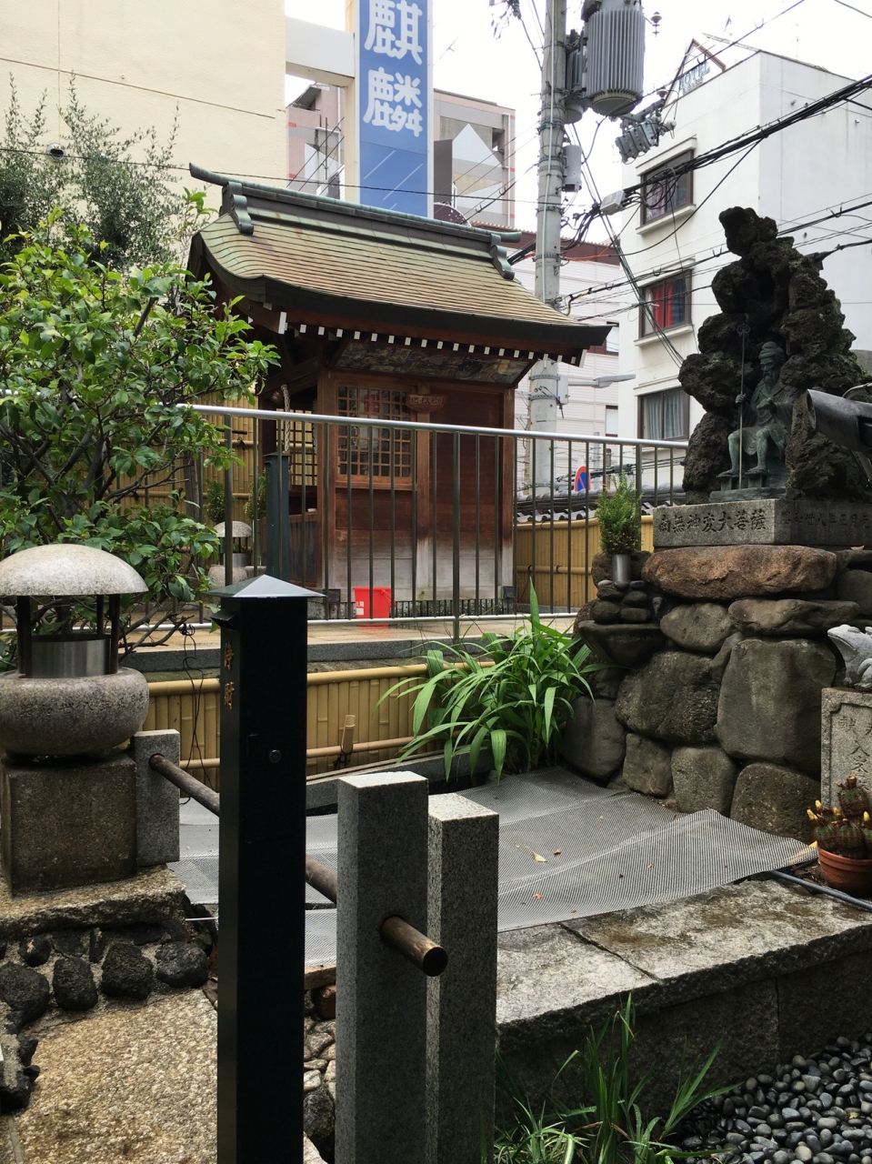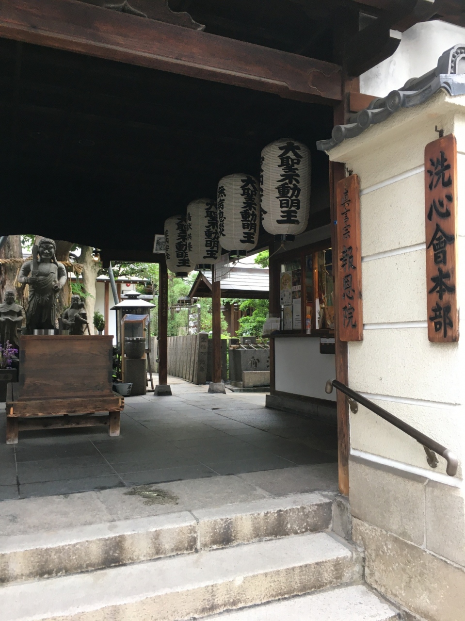 坂道沿いにあり中に入ると右側に小さな社務所があり上にはいくつかの小さな提灯がぶら下がっていました。コンパクトに纏まった境内で経車と言う鐘のようなものが8つ並んでいました。そのほかは、お堂や石仏があり、大木もありました。