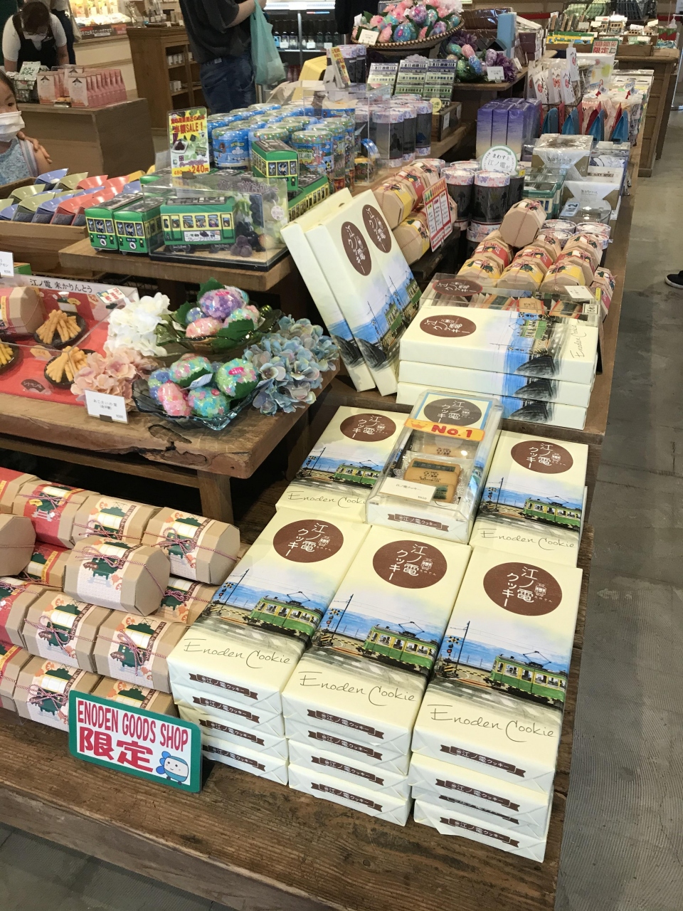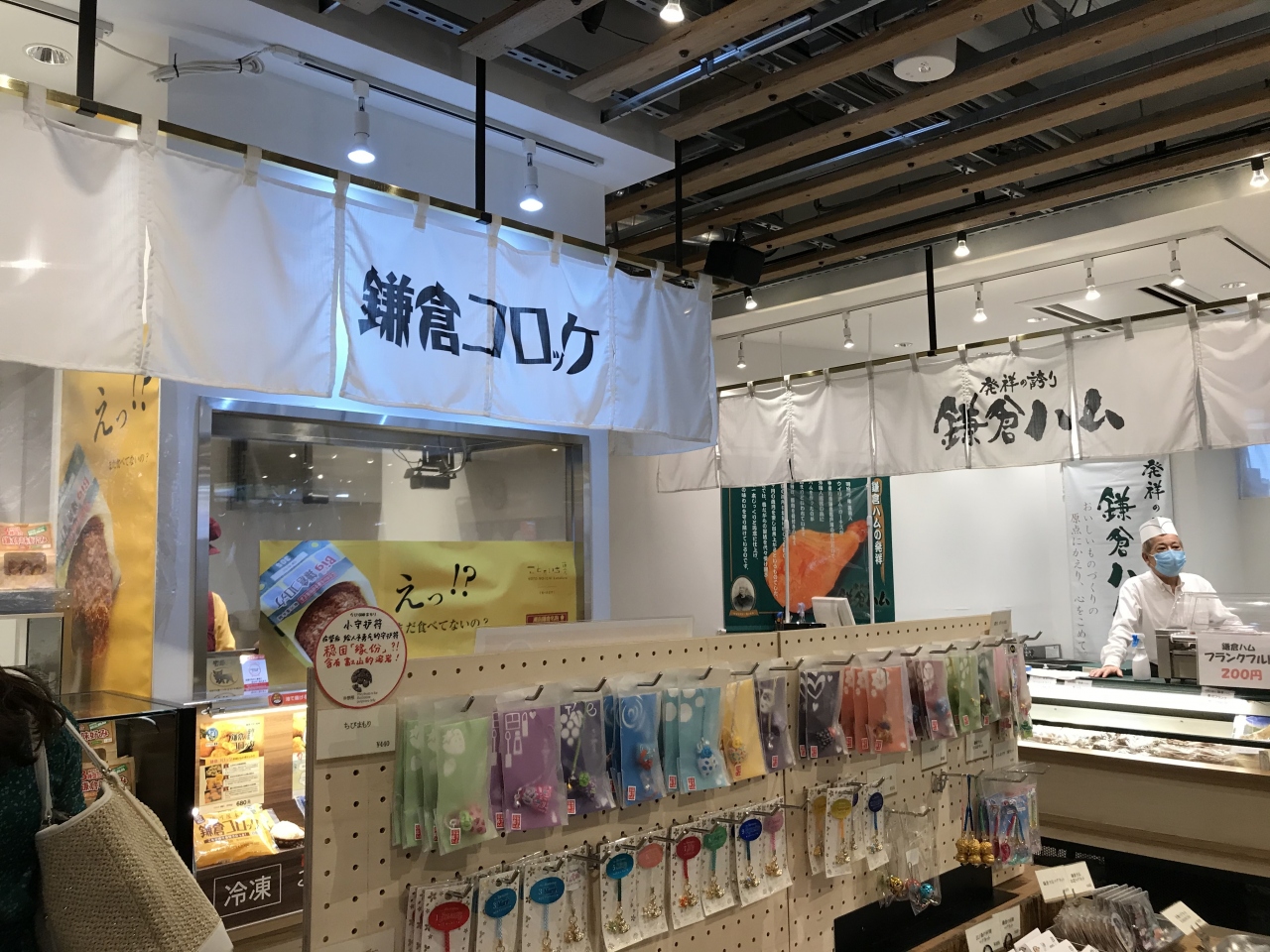 お店は、鳩サブレー、鎌倉ハム、鎌倉コロッケ、江ノ電グッズショップ、セブンイレブンが入店しています