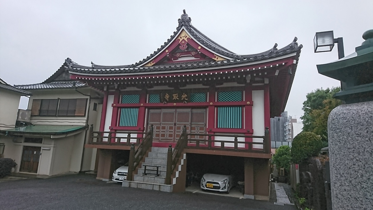 品川区上大崎1丁目の寺院が密集している地域にある浄土宗寺院で、芝増上寺下屋敷内子院8ヶ寺の1つです。寛永元年(1624年)に芝西久保に創建され、天和3年(1633年)に現在の場所に移転してきたそうです。えんじ色の柱の本堂が印象に残っています。
