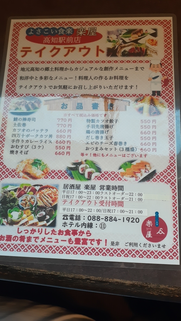 JR高知駅南口から南東寄りに徒歩5分弱のところに位置する「ホテル楽家櫻館」というホテルの中にある居酒屋です。