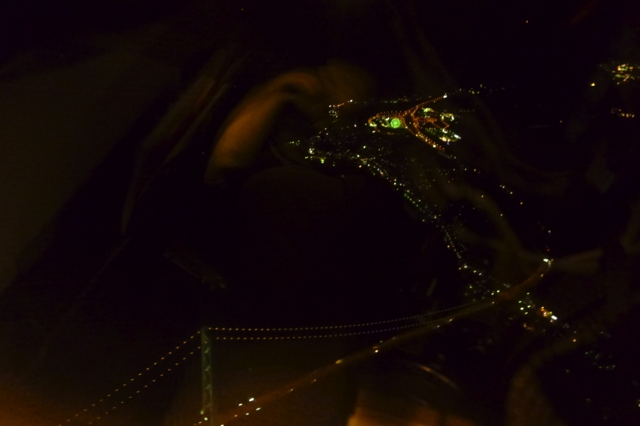 羽田空港から神戸空港へのアプローチは、一旦明石上空迄飛んで、そこから豪快にUターンを掛けて神戸空港へ降下してゆきますが、その折に明石海峡大橋の真上を通過します。その一瞬を上手く捉えれれるか?というところに撮影の醍醐味があり、それが神戸旅の楽しみの一つでもあります。今回は淡路島側の座席から、神戸淡路鳴門自動車道(E28)淡路サービスエリアの夜間照明を上に入れた、明石海峡大橋の橋梁を捉えることが出来ました。