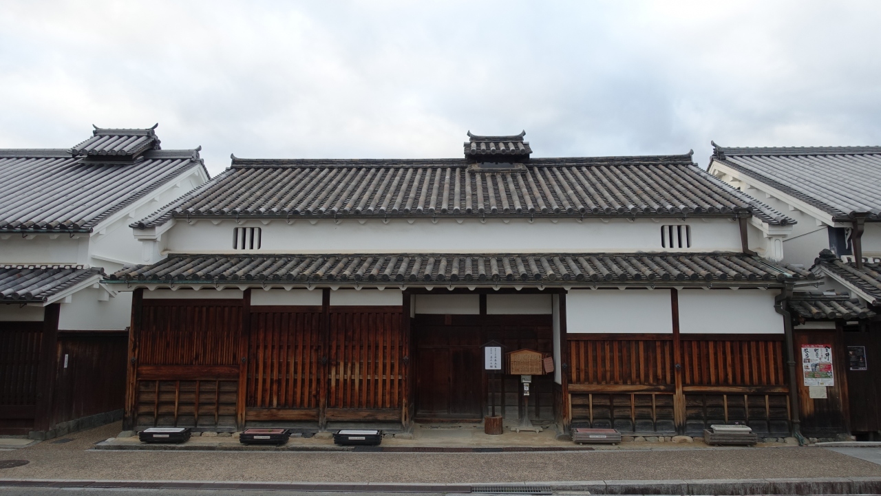 歴史的な街並みが印象的な今井町の一画にある建物です。あまりの美しさ、保存状態の良さに驚いたのですが、案内板を読むと、一度解体され復元された建物のようです。その結果、この通りは歴史的な外観の建物が続き、まるでタイムスリップしたのような景色が楽しめます。