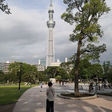 隅田公園は隅田川沿い、かなり広いです。言間橋の両側はアジサイロードです。今は見どころ、カメラを持って、写真を撮りながら散策する人は時々見えます。スカイツーリを見ながら、コーヒーショップも川沿いあります。リラックスできます。