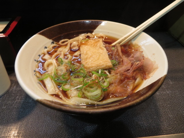 ツァーで集合時間を決められ、わずかな時間にこちらのお店に来ました。だしは黒いですが、このだしがきしめんに合うんですね。コロナの影が忍び寄って来たころで、店員さんが向かいの新幹線を見て「人が少ないなあ」とつぶやいてました。確かにこんなに美味しいのに、お客は私を入れて二人でした。
