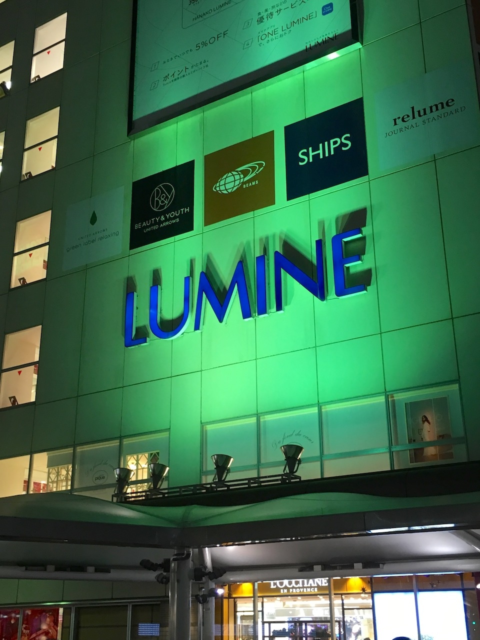 年末の夜に町田に行くと、白い建屋が緑色にライトアップされていました。
