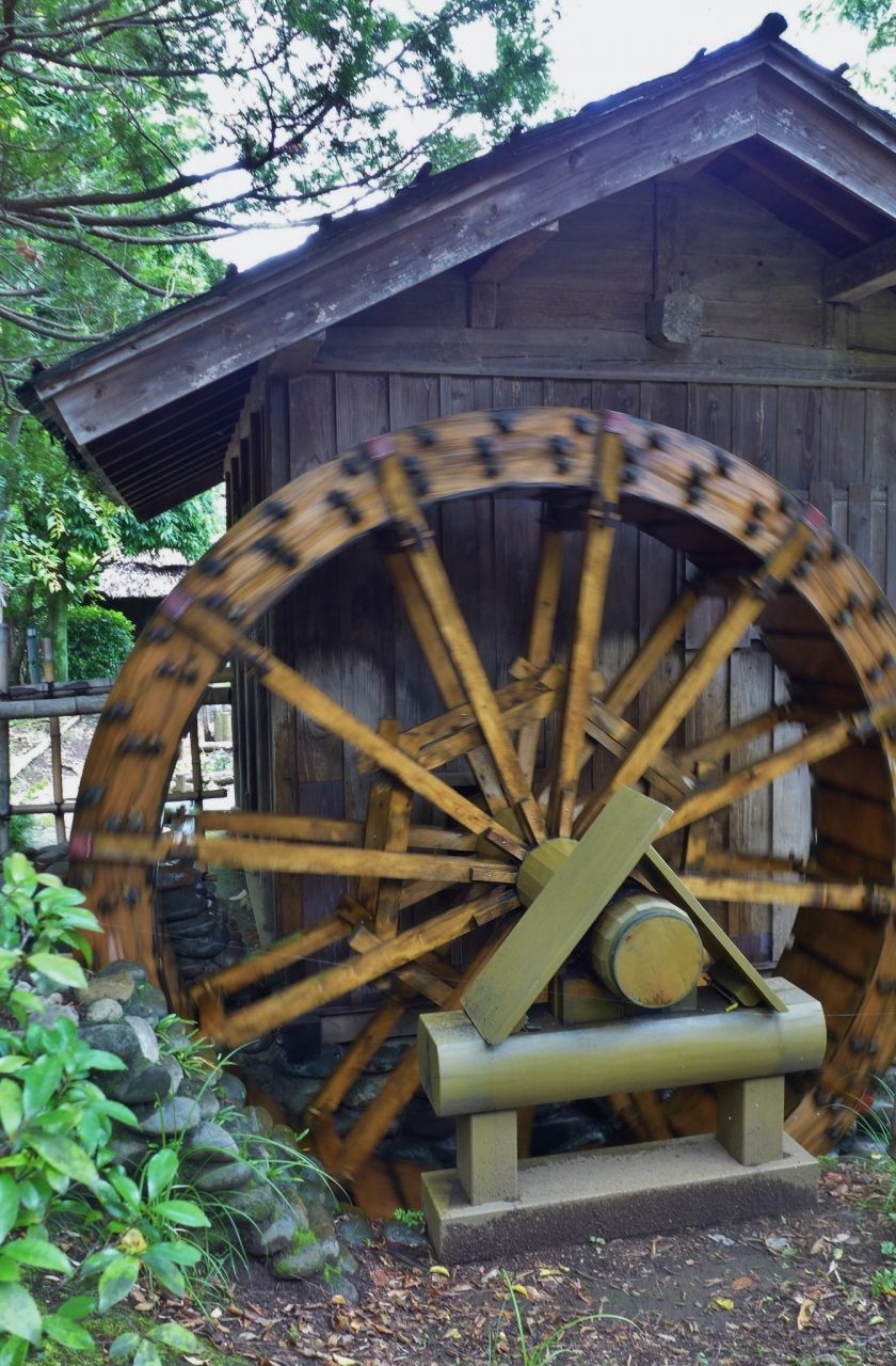 コロナ騒動の影響があって建物の内部は入れませんでしたが、水車や田んぼの案山子など昔なつかしい光景が見られます