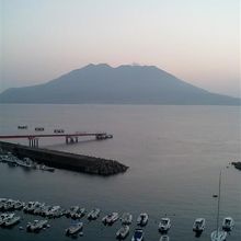鹿児島市街から錦江湾を隔てた約4km沖にそびえる活火山です。岩肌が荒々しいその姿は雄大で、はるか昔から地元の人の