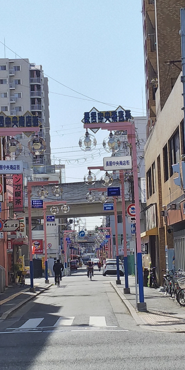 JR阪和線の長居駅のあたりにある商店街です。スーパーマーケットや100円ショップ、昔ながらの時計屋さんやタバコ屋さんなどいろいろあります。セレッソ大阪のスタジアムなどがあり、お客さんが多そうな割にはこぢんまりしています。