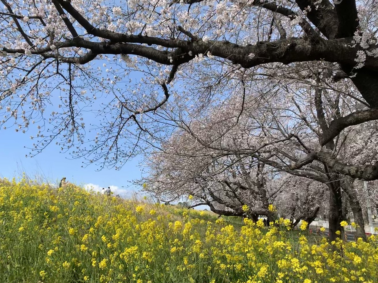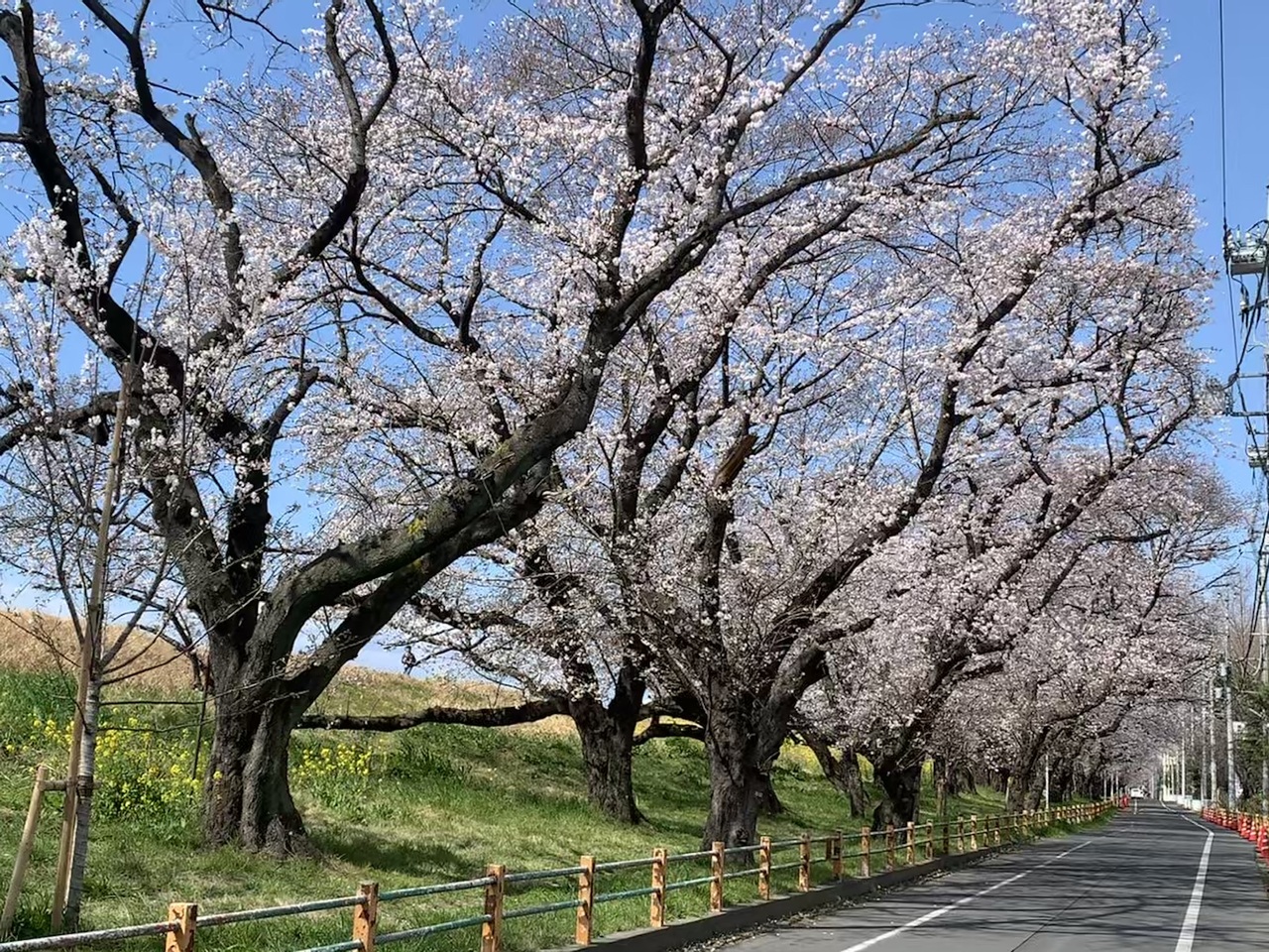 桜と菜の花のコラボが数百メートル続く景色は見事です。