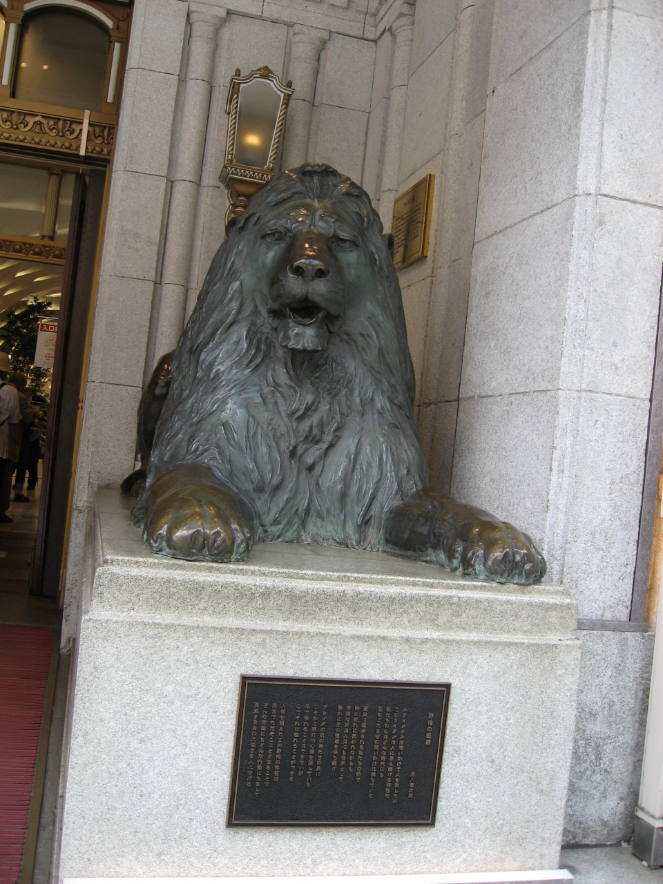 この像の歴史は大正3年で、モデルはイギリス・トラファルガー広場のライオン像です。