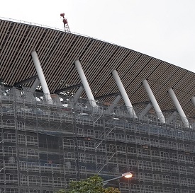 久々通った外苑、国立競技場はまだまだ足場が組まれていましたが、最上部の木材を使ったというご自慢の庇部分は眺められるようになっていました。