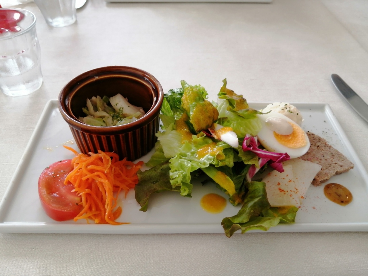 薄焼きピザのようなタルトフランベもおいしかったが、前菜盛り合わせもおいしくコスパいいですね。