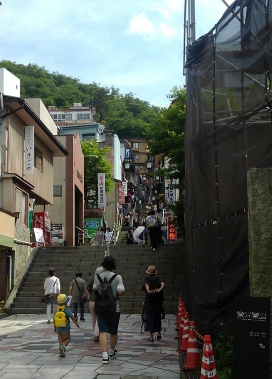 伊香保温泉と言えば石段がシンボルと言えます。その石段は約400年の歴史があるとのこと。石段の幅は 上に行く程狭くなっています。階段脇にはお土産屋が並び 懐かしい射的のお店などもありました。階段の所々で 源泉が流れているのが見られ 風情を感じました。