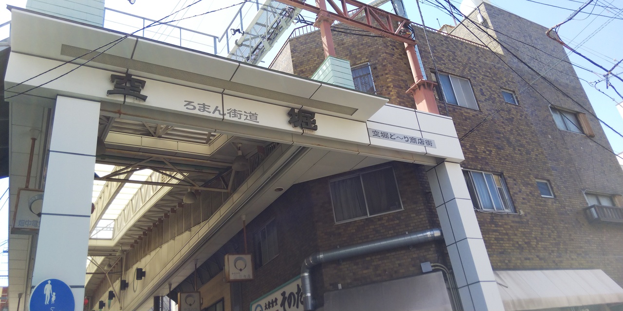 空堀商店街は松屋町筋~谷町筋~上町筋まで続くアーケード商店街で、東西約800メートルあります。明治以降から戦前まで賑わい、戦後も空襲被害が少なく、いち早く復興したそうです。大坂市内初の福引き大売り出しをしたこともあります。