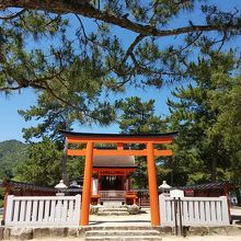 綺麗な朱塗りの鳥居にこじんまりとした社があります。