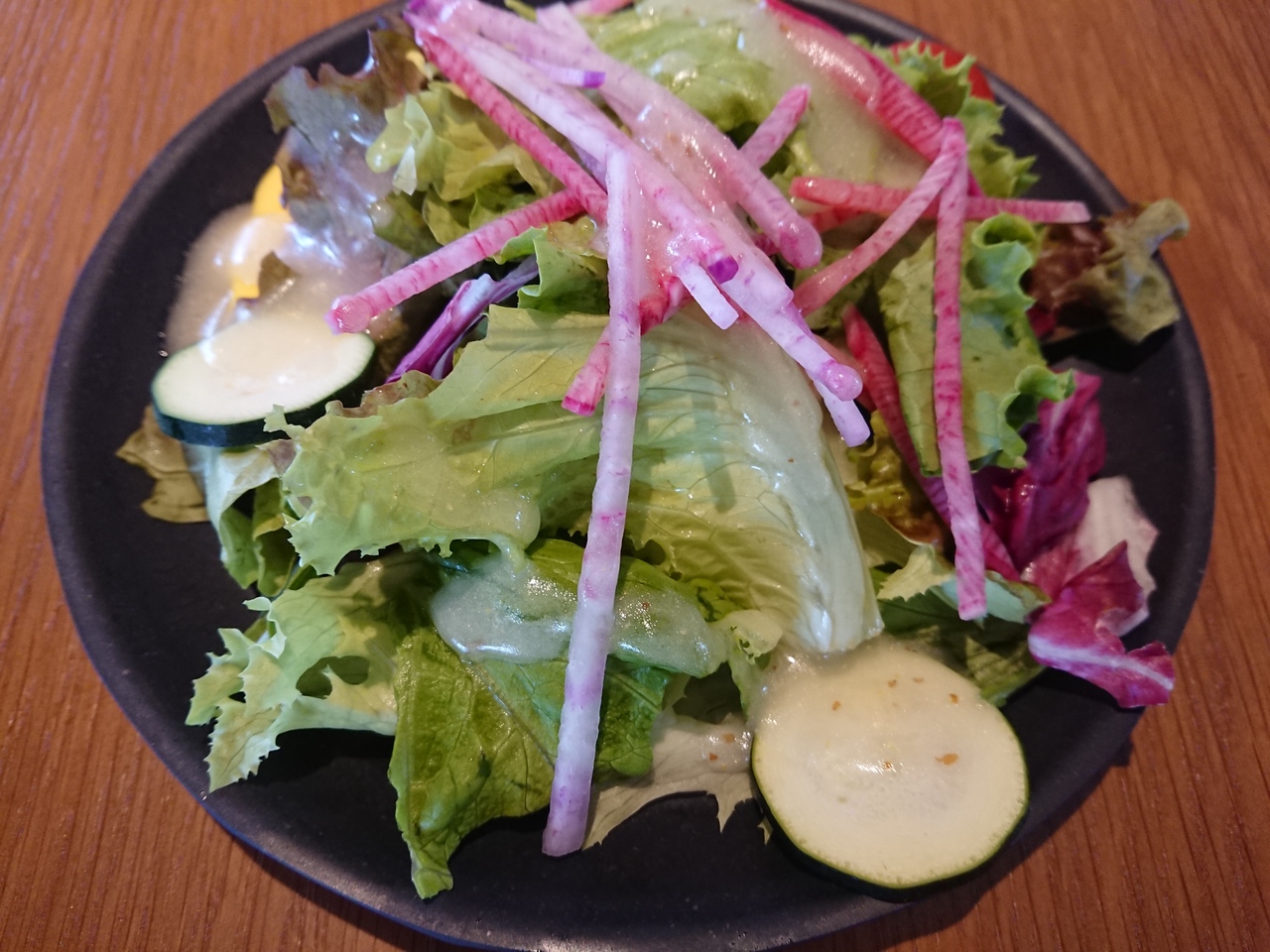 お洒落な店内だったので、入ってみました。サーモンケイジャングリルファフィータ(1,320円)を注文。サラダがセットになっていますが、サラダと水はセルフサービスです。メインはちょっと味がボヤけているように感じられ、可もなく、不可もなく・・という感じでした。