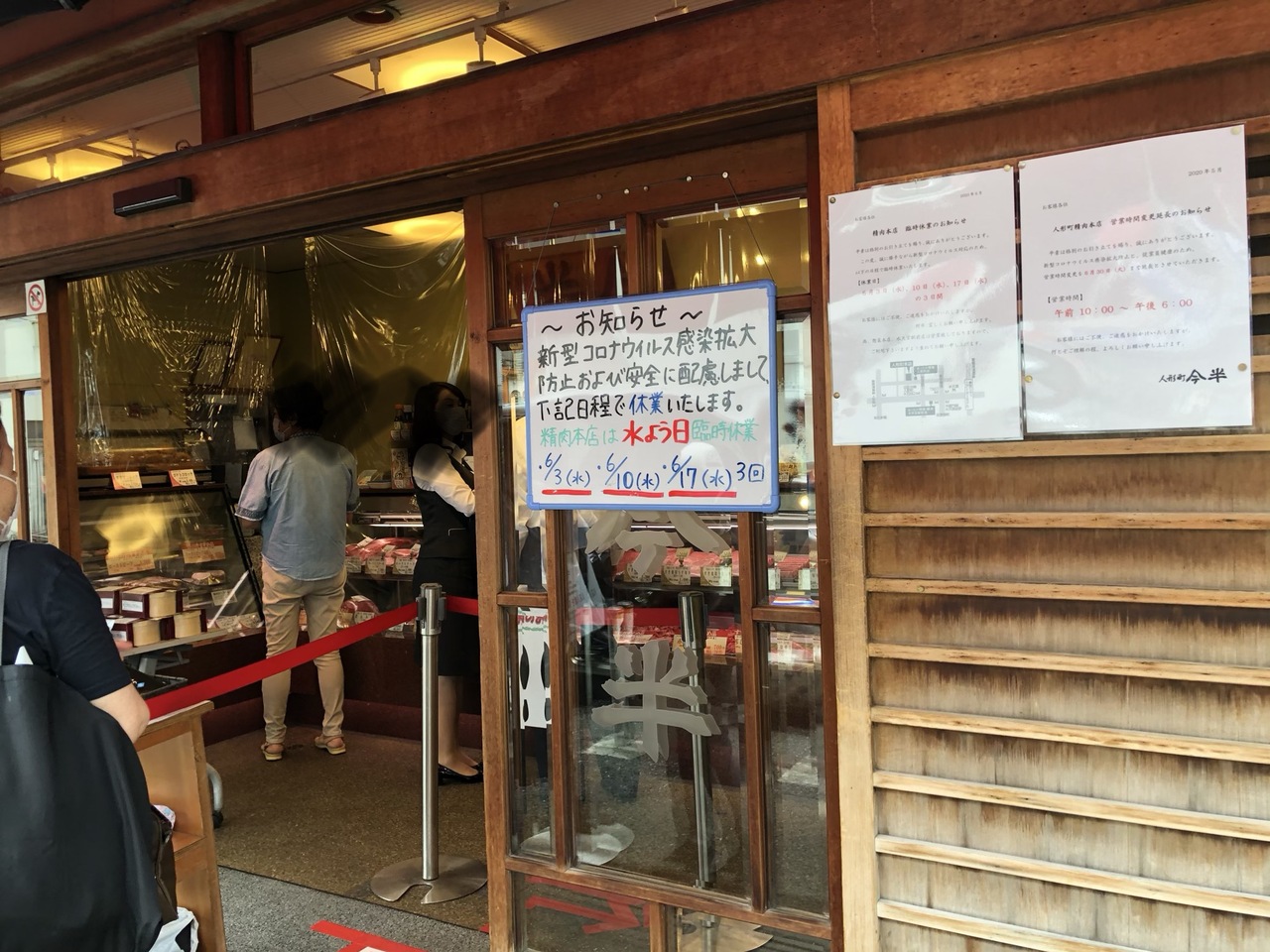 水天宮にある今半さん。大通り沿いにあるお総菜に特化した店舗は今は閉鎖しているということで、精肉・加工品はすべてこちらの店舗で扱っているそうです。
