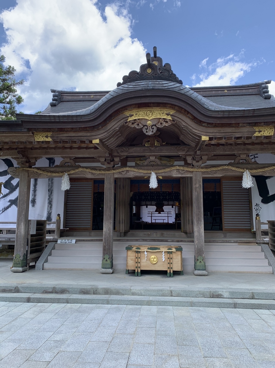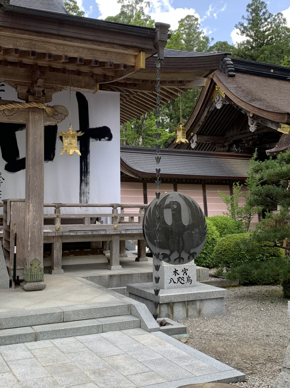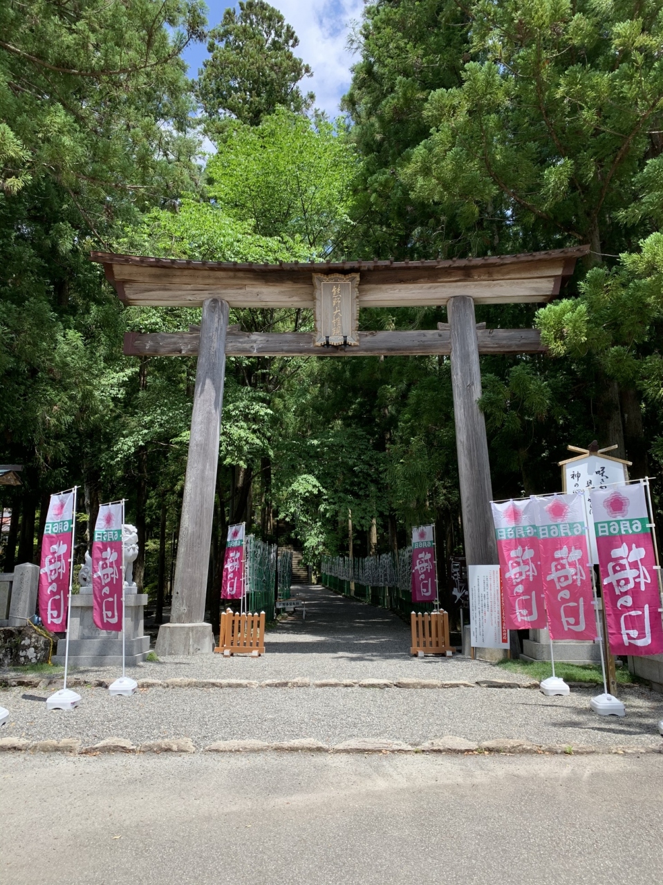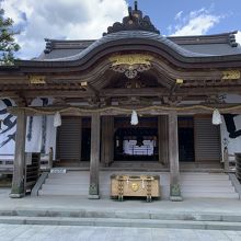 長い階段を上がると檜皮葺の立派な社殿が見えました。