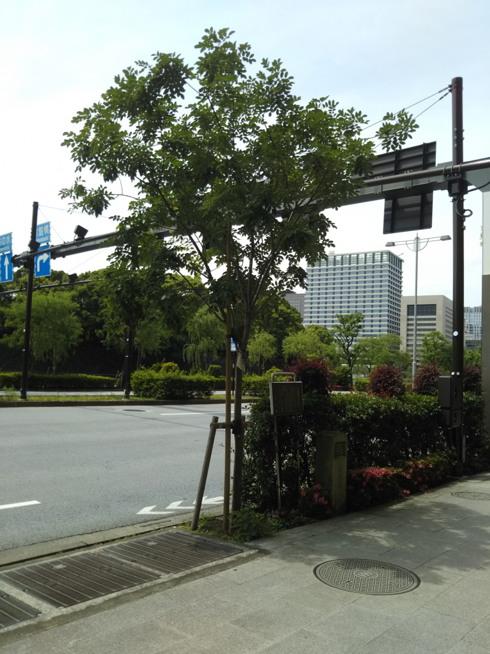 碑の横の簡単な解説によれば、明治8年にニセアカシアが植えられ東京市内最初の街路樹となったそうです。