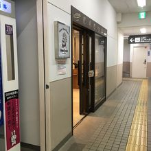 証明写真のボックスがある先、トイレとか定期券売り場がよくあるような場所に、看板も小さめにひっそり。