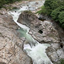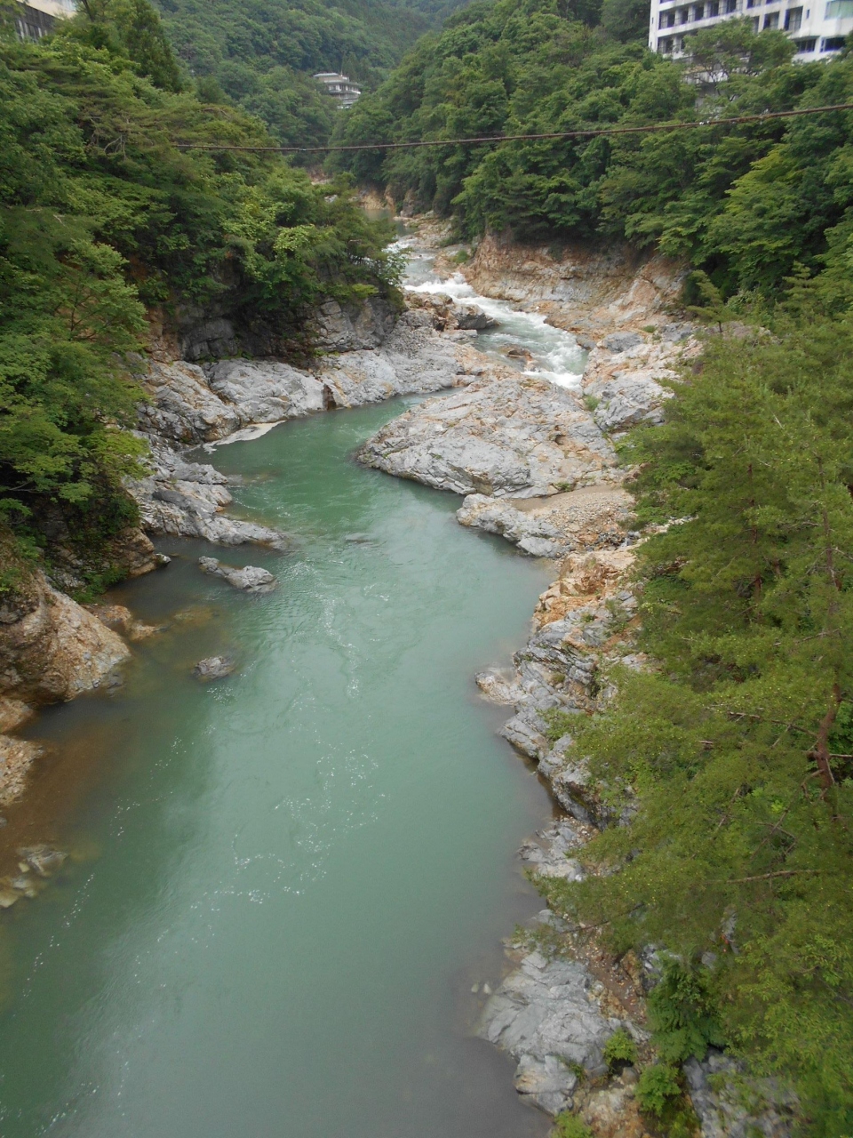 鬼怒川公園駅から直ぐ先、国道分岐点を左に入る。たもとに人形博物館がある。駅から行くと左側、下流側に歩道が整備されている。渓谷が見応えある。上流側は非常に興味深い瀬になっており、見逃せない。但し、こちら側には歩道が無いので最新の注意が必要だ。