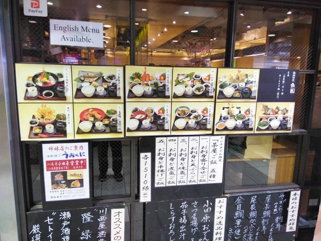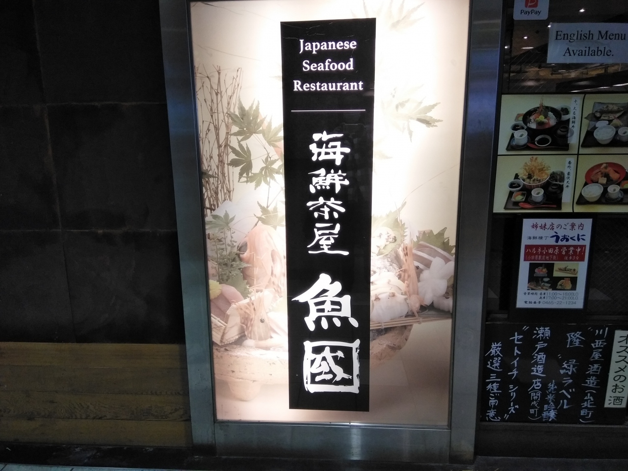 ここは小田原駅の下り階段の左側にあります。昼時は混雑します、入口で名前を書いて予約しますが土日は混雑します。入口には椅子があるので1時間待ちました。海鮮のランチメニューが狙いめです。1500円前後であります。