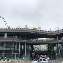 出口から出て振りかえったらびっくり!宮下公園が立体構造物になっていました。