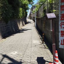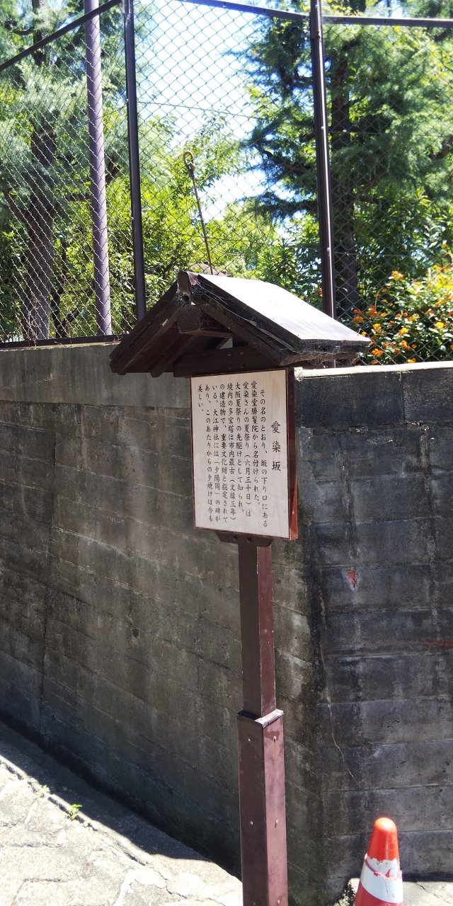 愛染坂は天王寺七坂のひとつで、七つの坂のちょうど真ん中あたりにあります。階段はなくて、なかなか急な坂がありました。坂を登りきったところには愛染堂や大江神社があります。最寄りの駅は大阪メトロ谷町線の四天王寺前夕陽ヶ丘駅です。車両は通行禁止です。