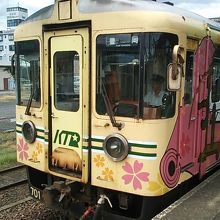 1両編成のディーゼルカーでの運転と車両数は少なめですが、座席は2人掛け転換式クロスシートが装備され、トイレも付いていて設備面は比較的快適です。