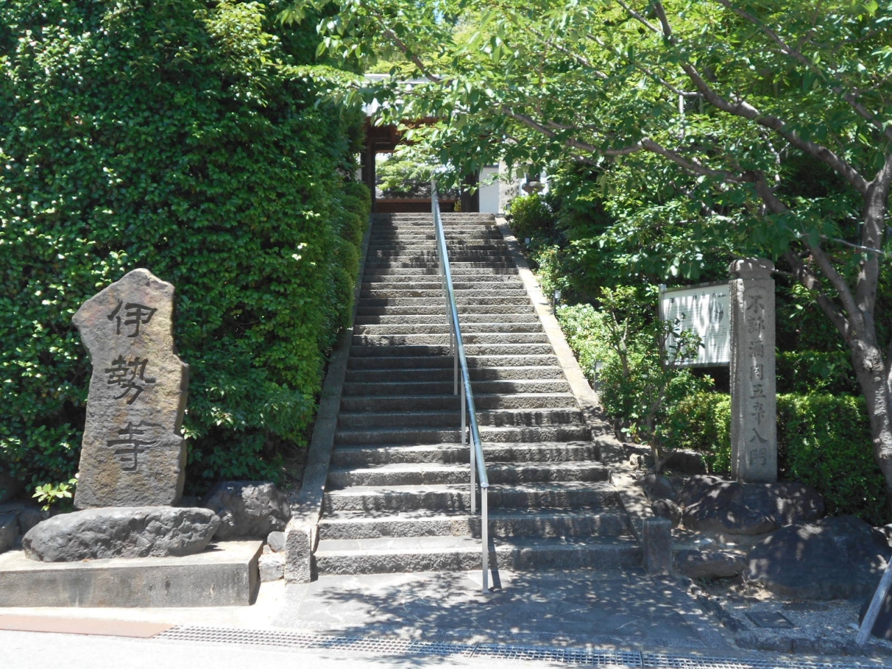 最初山門が閉まっていると思いましたが、横から境内に入れました。美しく整えられた境内です。伊勢寺は曹洞宗に属し、聖観音を本尊とする寺院です。三十六歌仙の一人で平安中期の女流歌人、伊勢姫が晩年を過ごした草庵跡に建立されたといわれています。本堂の西側には伊勢廟堂が建っています。境内の伊勢姫の代表作の歌が刻まれた句碑もありました。あじさいも少し見れました。