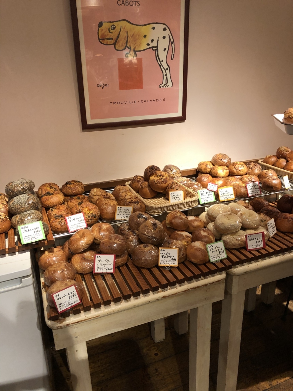 代々木八幡、代々木公園駅から徒歩ですぐの場所、少し隠れた細道の建物の地下にある店。昼の十二時頃になると焼きたてのベーグルが焼きあがるのを知った常連客で行列ができる。種類が豊富で甘いものからお腹いっぱいになれる食事用のものまで、焼きたてのベーグルは本当に絶品