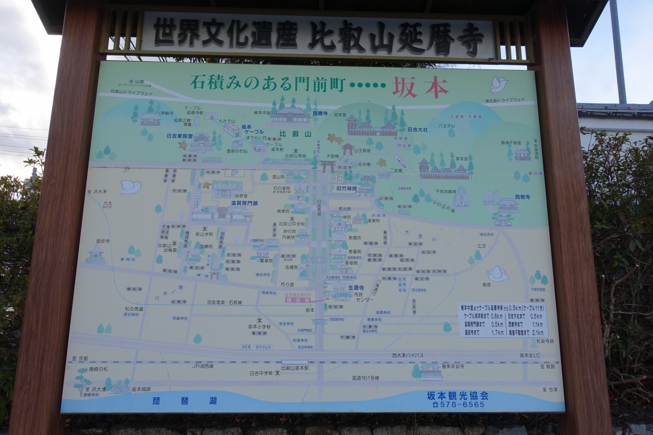 京阪電車の駅 坂本比叡山口の近くに新しいながらも昔の趣のある建物があります。ここが観光案内所です。案内所に入ると、係りの方がいて、親切に対応してくれました。坂本の町を歩くのに大変便利な地図も置いてありました。観光所の前には、周辺の観光地を描いた大きな地図もあり、周辺観光にも便利です。