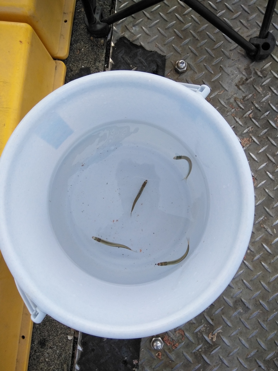 学校は自宅自粛でしたが横浜の釣り好きの孫が来たので早朝から行きました。岸壁釣りですが小学生位から親子連れで楽しめます。行った日は10組位親子がいました、幼児は落ちたら大変なので目が離せません。